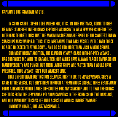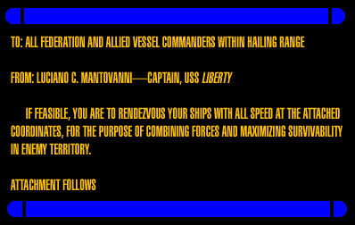 CAPTAIN E.J. DONALDSON COMMANDING, IN CLOSE FORMATION WITH STARFLEET/KLINGON