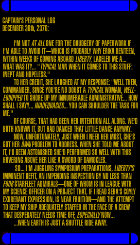 hadn't heard in such a context for almost 80 years. Vice Admiral T'Kara, efficient as ever, had fallen into her old science
