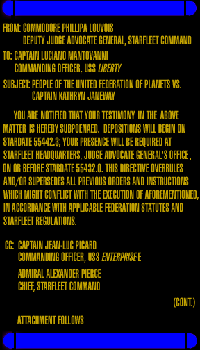 Louvois, Commodore, Deputy Starfleet Judge Advocate