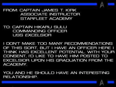 Luciano Mantovanni had served aboard USS Excelsior. It came to me only