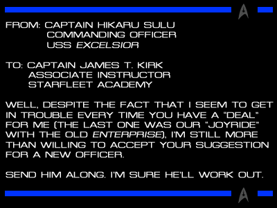 (who was, in that moment, disguised as Captain Sulu) during the emendations of