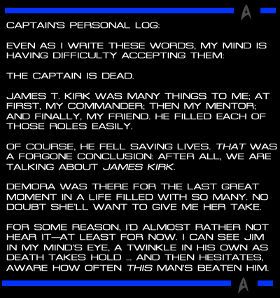 ready room, Demora Sulu's anxious eyes strained to catch his; as he passed, he