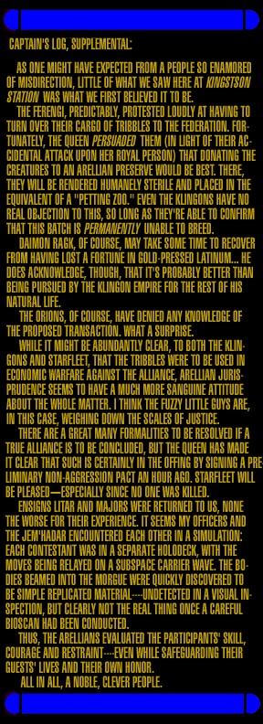 you Terrans would be outraged if I programmed tribble stew for the replicator.