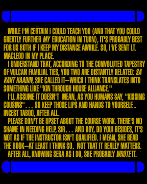 about ten weeks ago, she’d been a litigator with Starfleet’s Judge Advocate