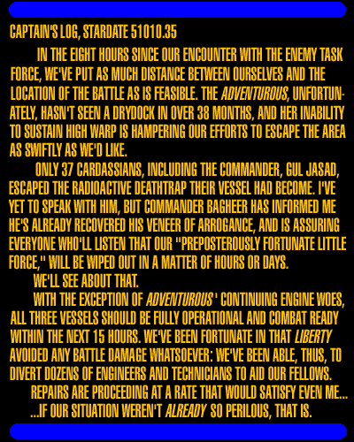 sudden change in their tactical situation, Kirith Ocett had weighed loyalty to her fellow Cardassians against